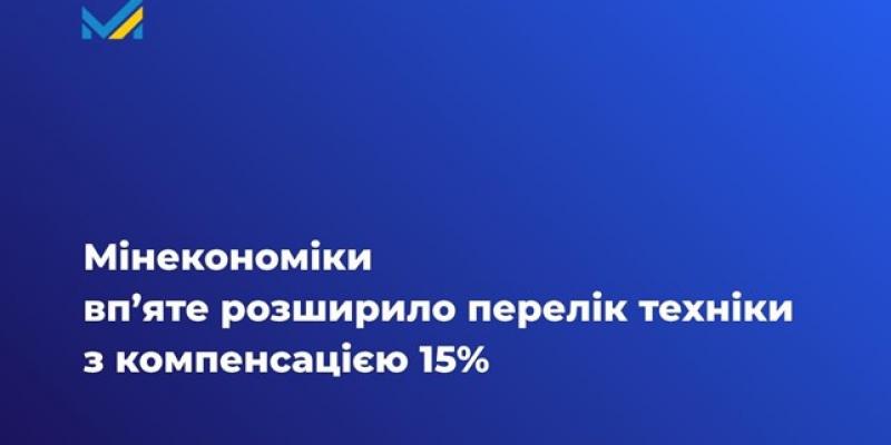 Компенсація 15% надається за сільськогосподарську техніку та обладнання